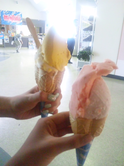 あいすー!かぼちゃ味と梅味&トマト味とさくらんぼ味。……………………………トマト味、やべぇ。これ、ただのトマト。まじトマト。トマトでしかない